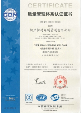 桐廬恒通電纜管道有限公司地處風景秀麗的富春江畔——桐廬縣。毗鄰杭新景高速公路、320國道,交通非常便利。公司注冊資金3060萬元人民幣,生產占地面積1.7萬平方米。公司集生產、銷售、服務于一體。公司成立以來以科學的樹脂配方,先進的生產工藝,生產開發氯化聚氯乙烯塑料、改性聚丙烯塑料、HTT系列玻璃纖維等系列電纜導管。公司產品經中國上海測試中心玻璃鋼復合材料行業測試點的測試和電力工業、電力設備及線路器材質量檢驗中心的檢測,化學、物理等各項指標全部合格……